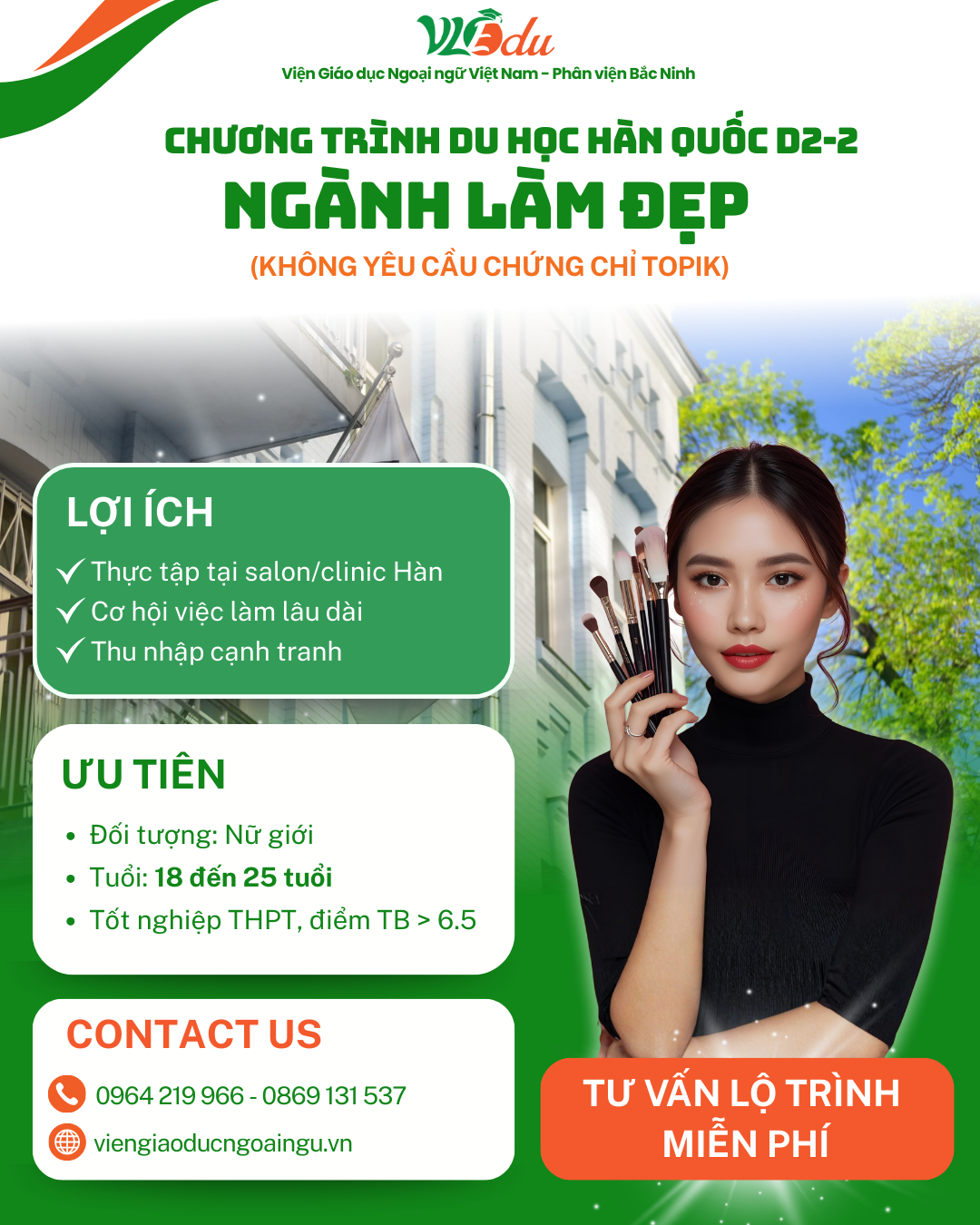 Nếu bạn muốn học một ngành có tính ứng dụng cao, ra trường có việc làm, thu nhập ổn định và khả năng ở lại Hàn Quốc lâu dài, chương trình D2-2 ngành Làm đẹp chính là lựa chọn chiến lược.