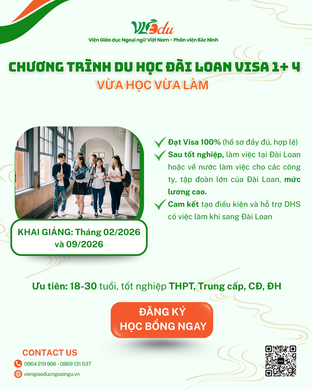 Chương trình Du học Đài Loan Visa 1+4 do Viện Giáo dục Ngoại ngữ Việt Nam (VLEDU) triển khai được thiết kế như một chu trình phát triển nhân lực khép kín: