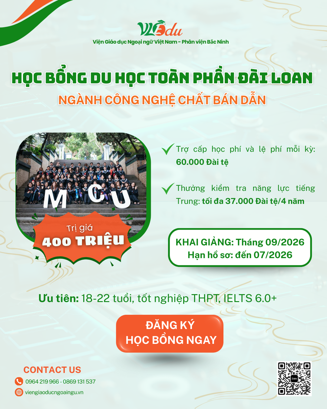 Chương trình Học bổng Doanh nghiệp – Ming Chuan University do Viện Giáo dục Ngoại ngữ Việt Nam (VLEDU) triển khai tại Việt Nam là một ví dụ điển hình.